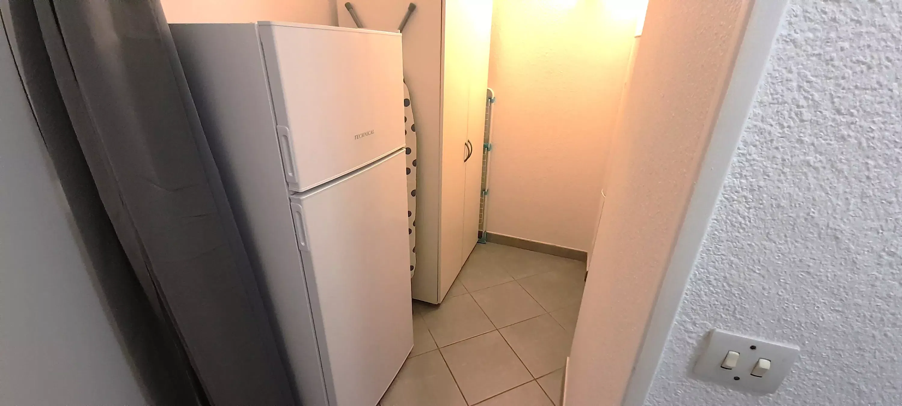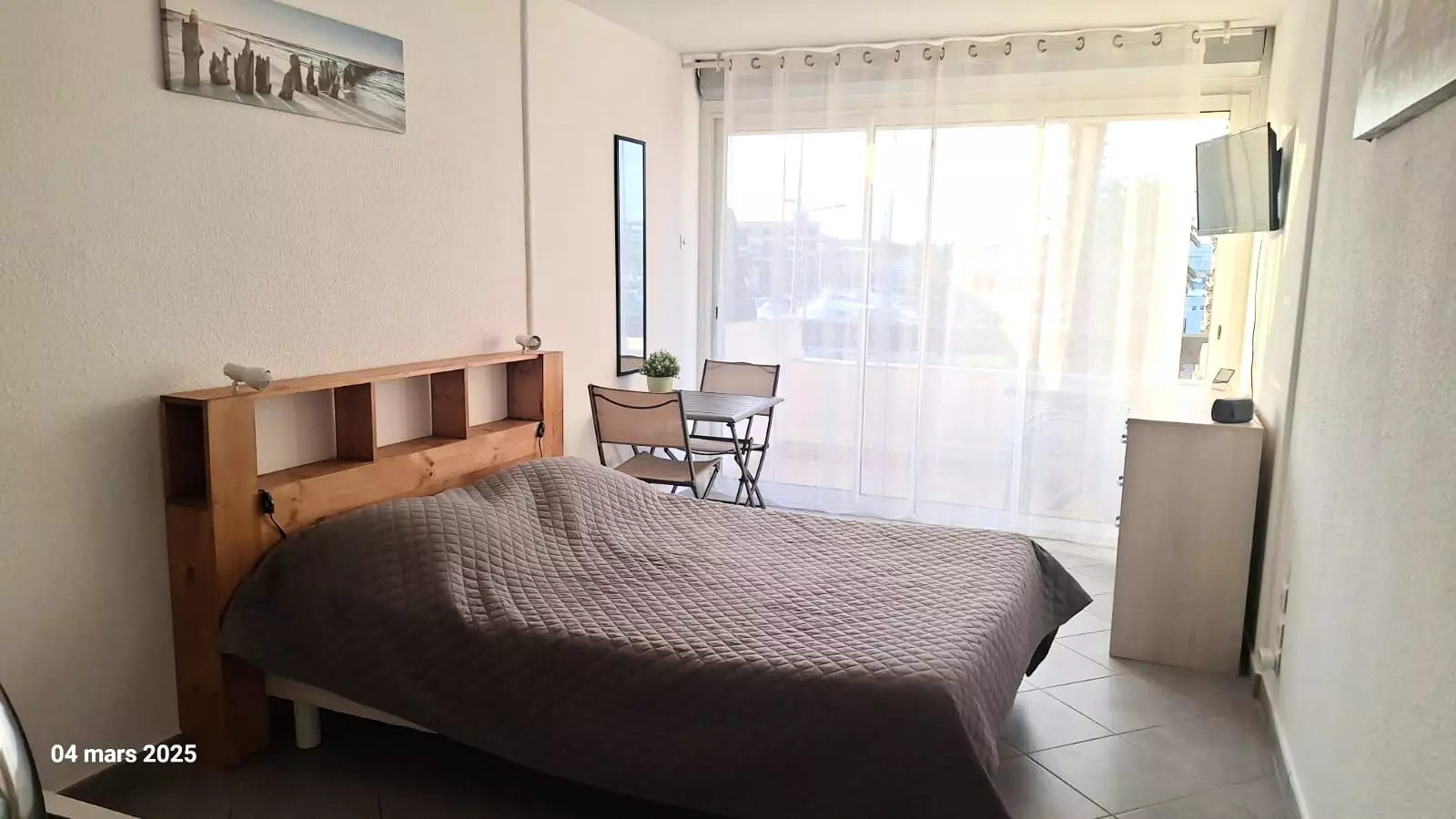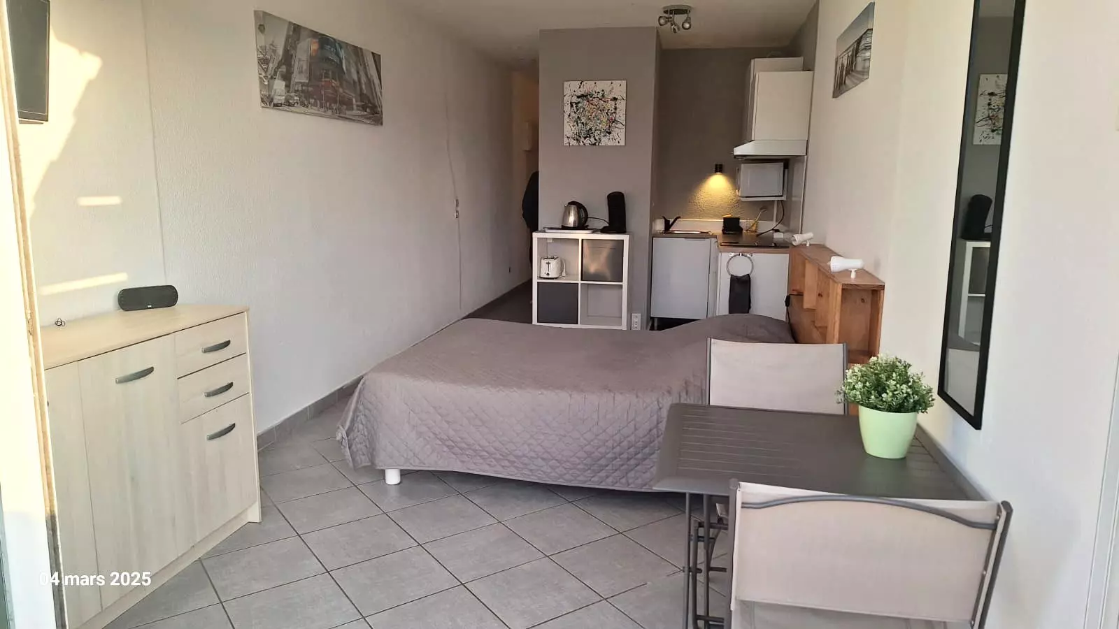 Studio pour 2 personnes, situé à Port Nature colline 7, au 1er étage, avec ascenseur. Séjour avec lit en 140cm. Coin cuisine avec micro ondes, cafetière Nespresso, fer a repasser et planche, bouilloire, Pierrade, robot cuisine, Air fryer, sèche cheveux et ventilateur , télé. Salle d'eau avec wc. Terrasse avec vue sur le port. Parking n° 202.