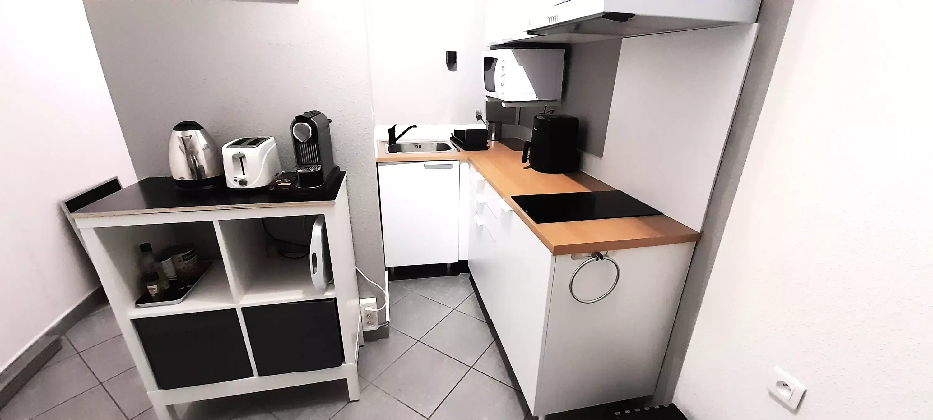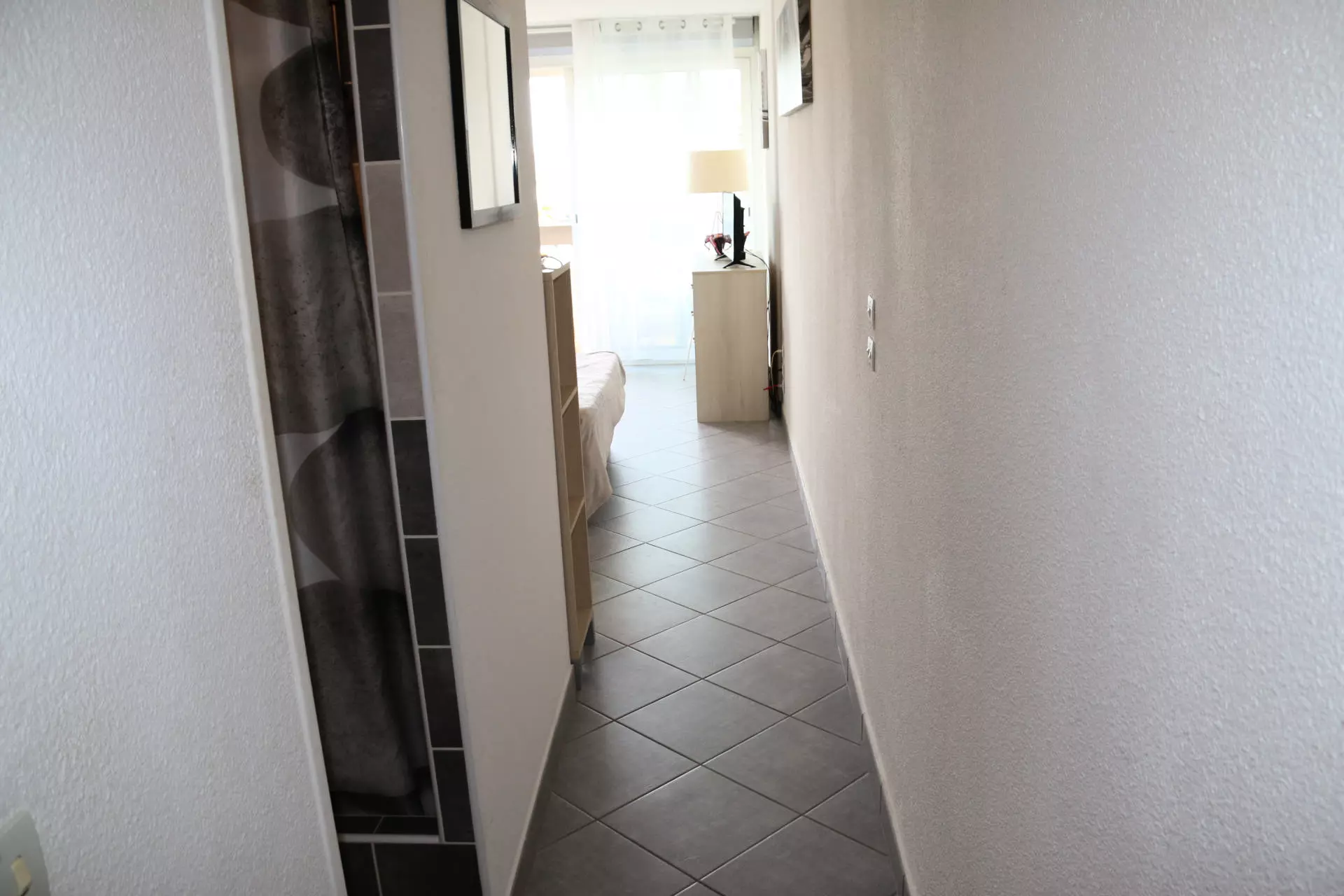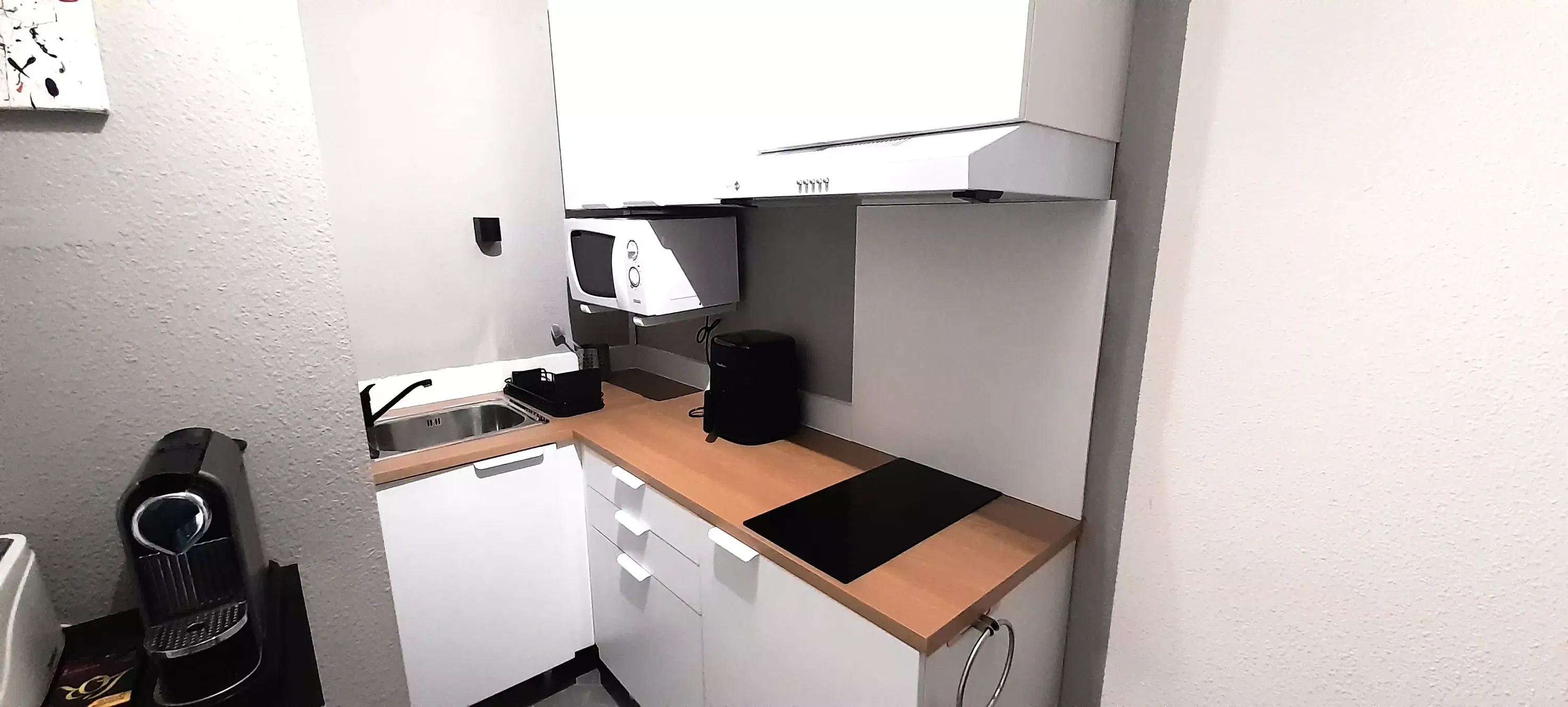 Studio pour 2 personnes, situé à Port Nature colline 7, au 1er étage, avec ascenseur. Séjour avec lit en 140cm. Coin cuisine avec micro ondes, cafetière Nespresso, fer a repasser et planche, bouilloire, Pierrade, robot cuisine, Air fryer, sèche cheveux et ventilateur , télé. Salle d'eau avec wc. Terrasse avec vue sur le port. Parking n° 202.