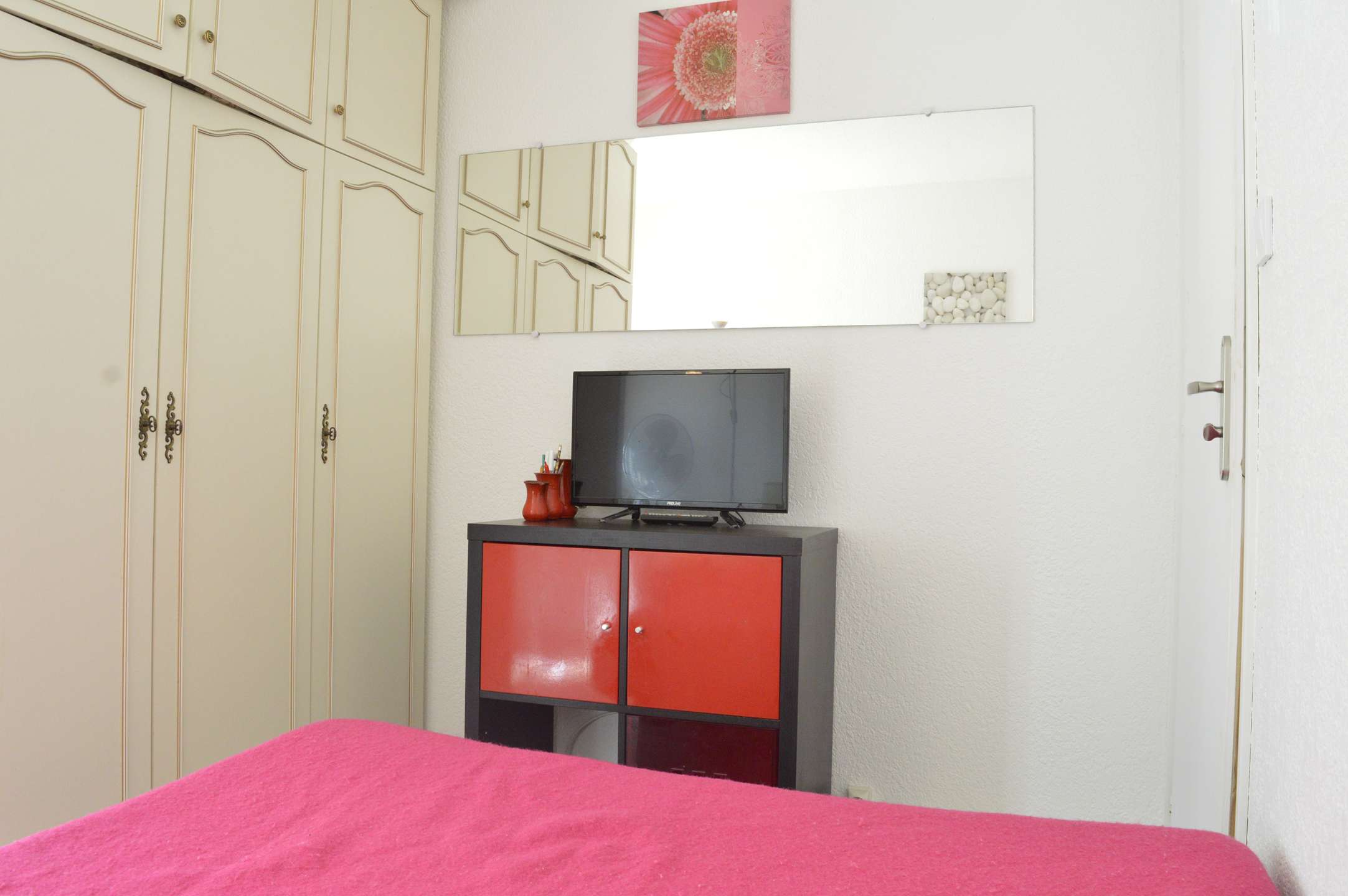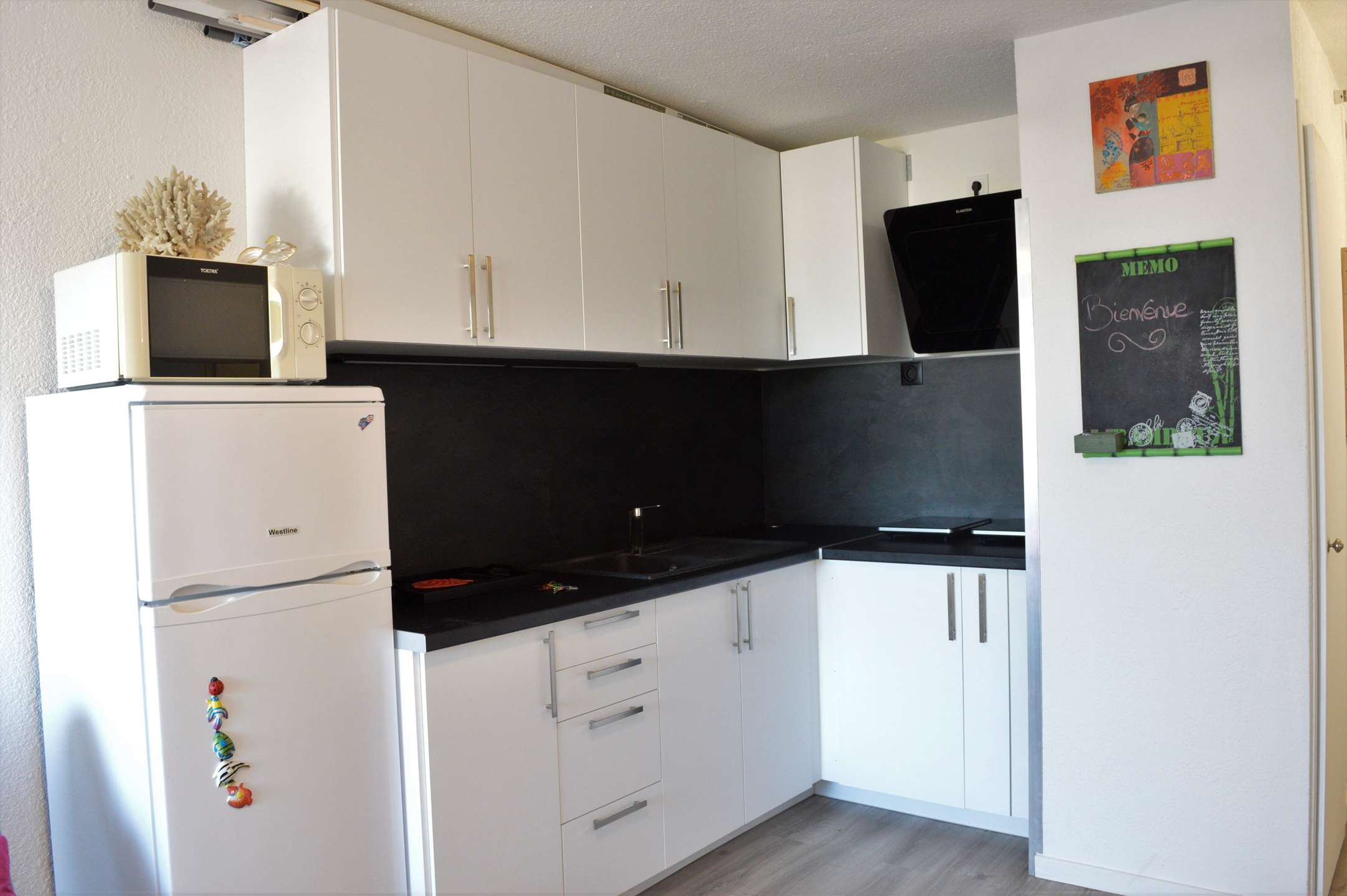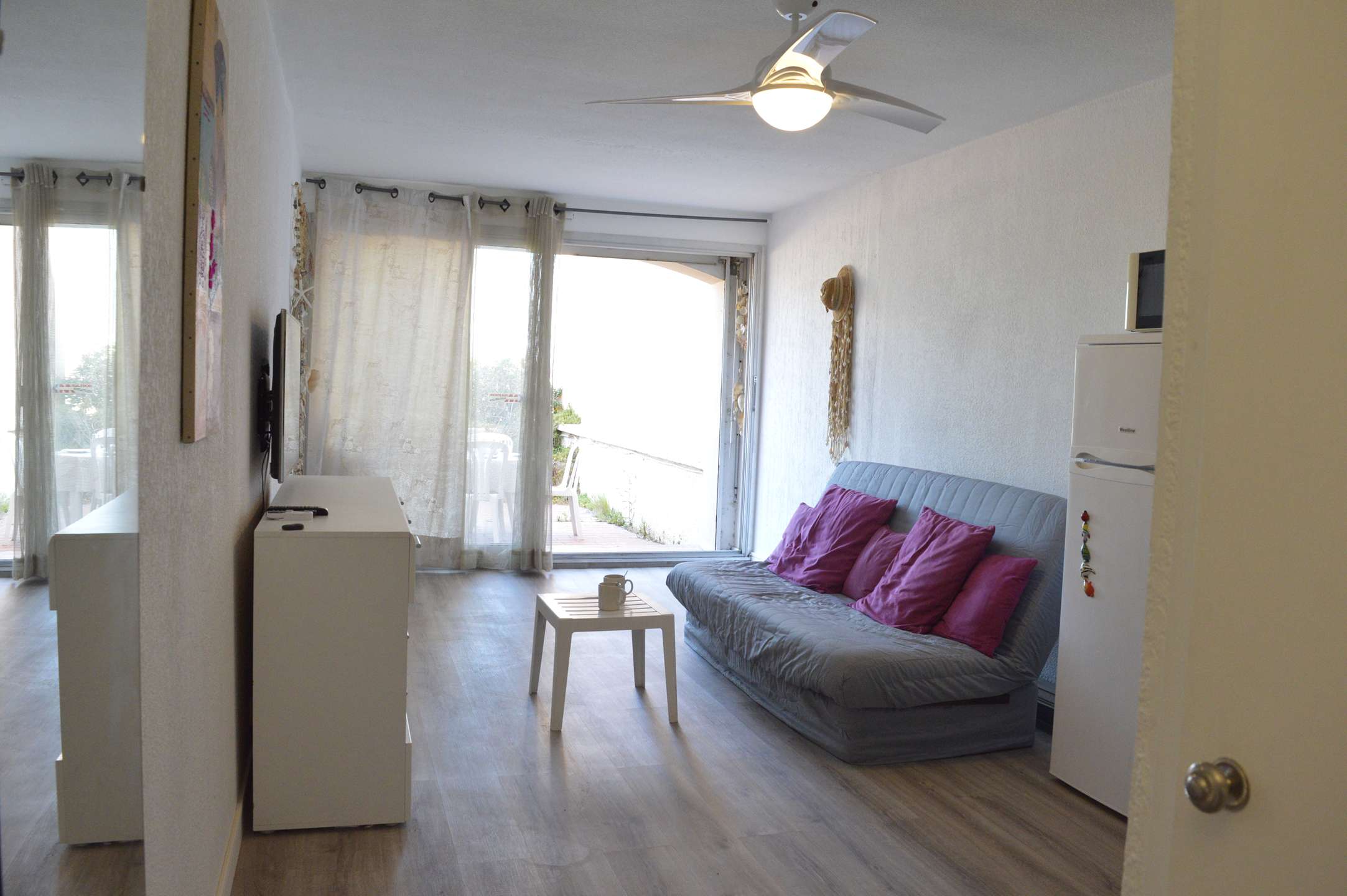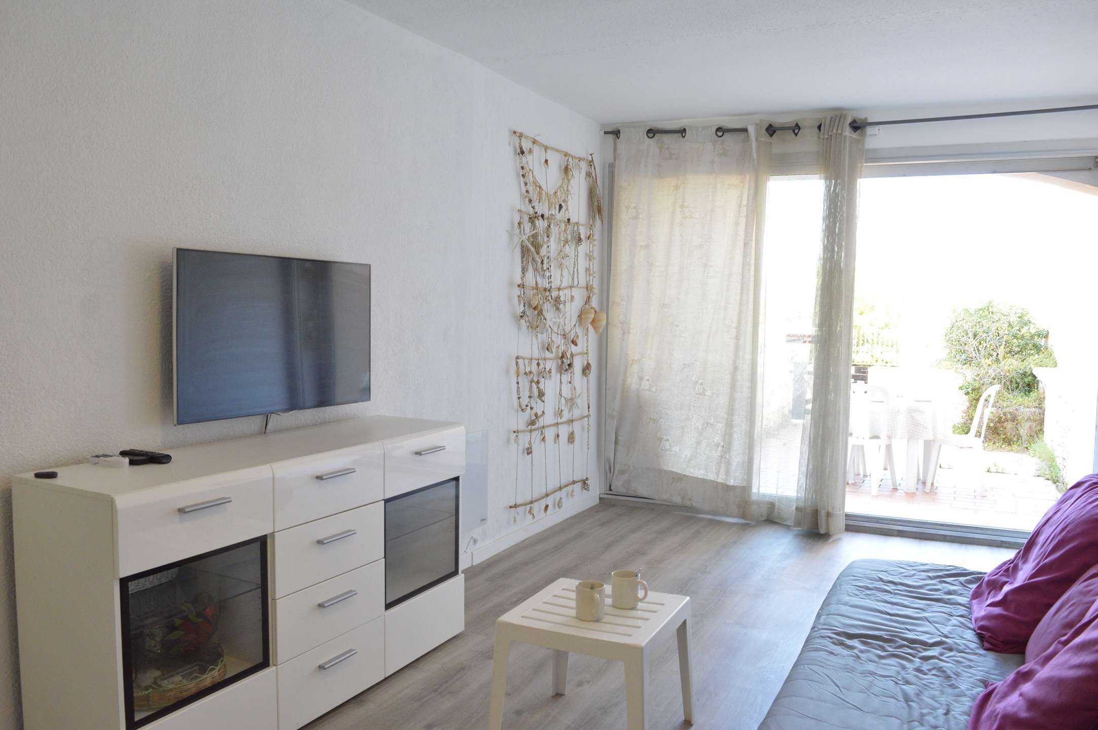 Cet appartement de vacances, situé au rez de chaussée, comprend un séjour avec 1 canapé convertible 2 places, une télévision, un coin cuisine équipé, une salle d'eau avec WC et une cabine avec un lit deux places.