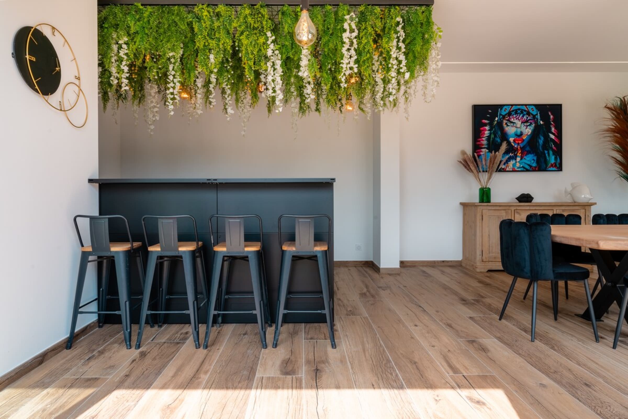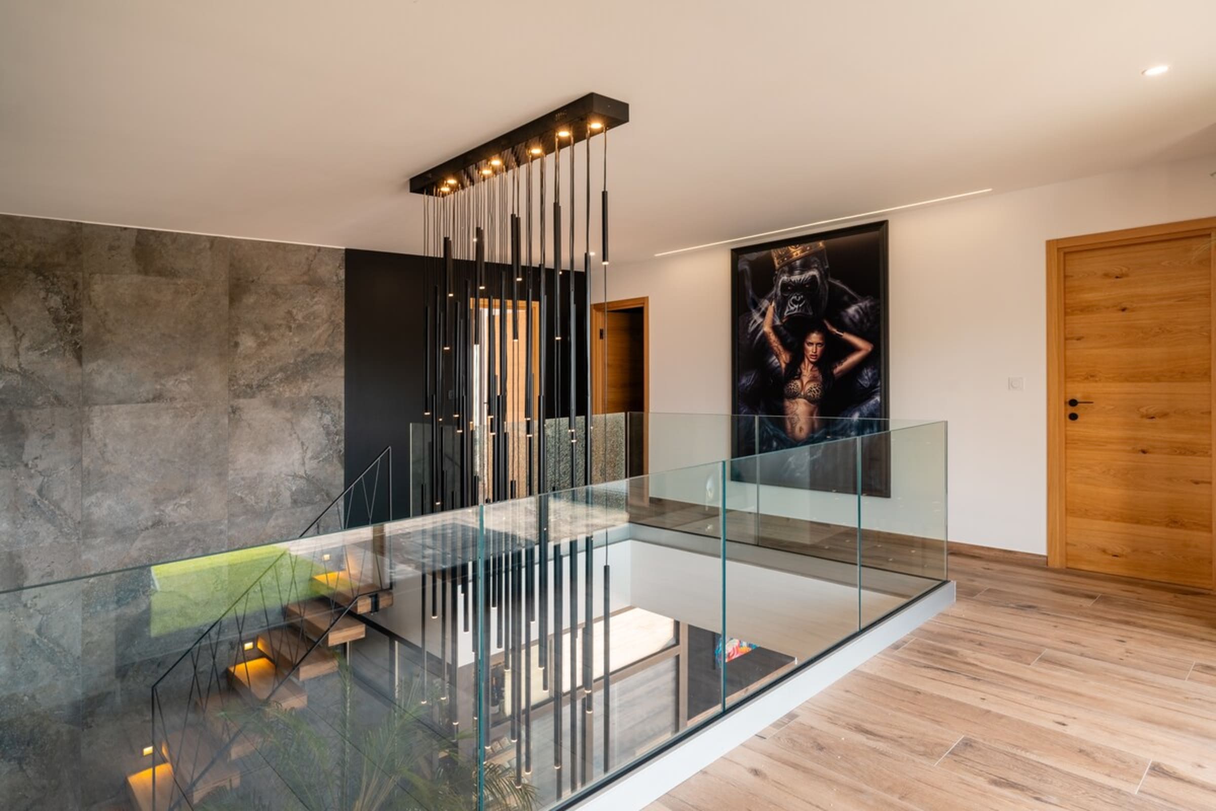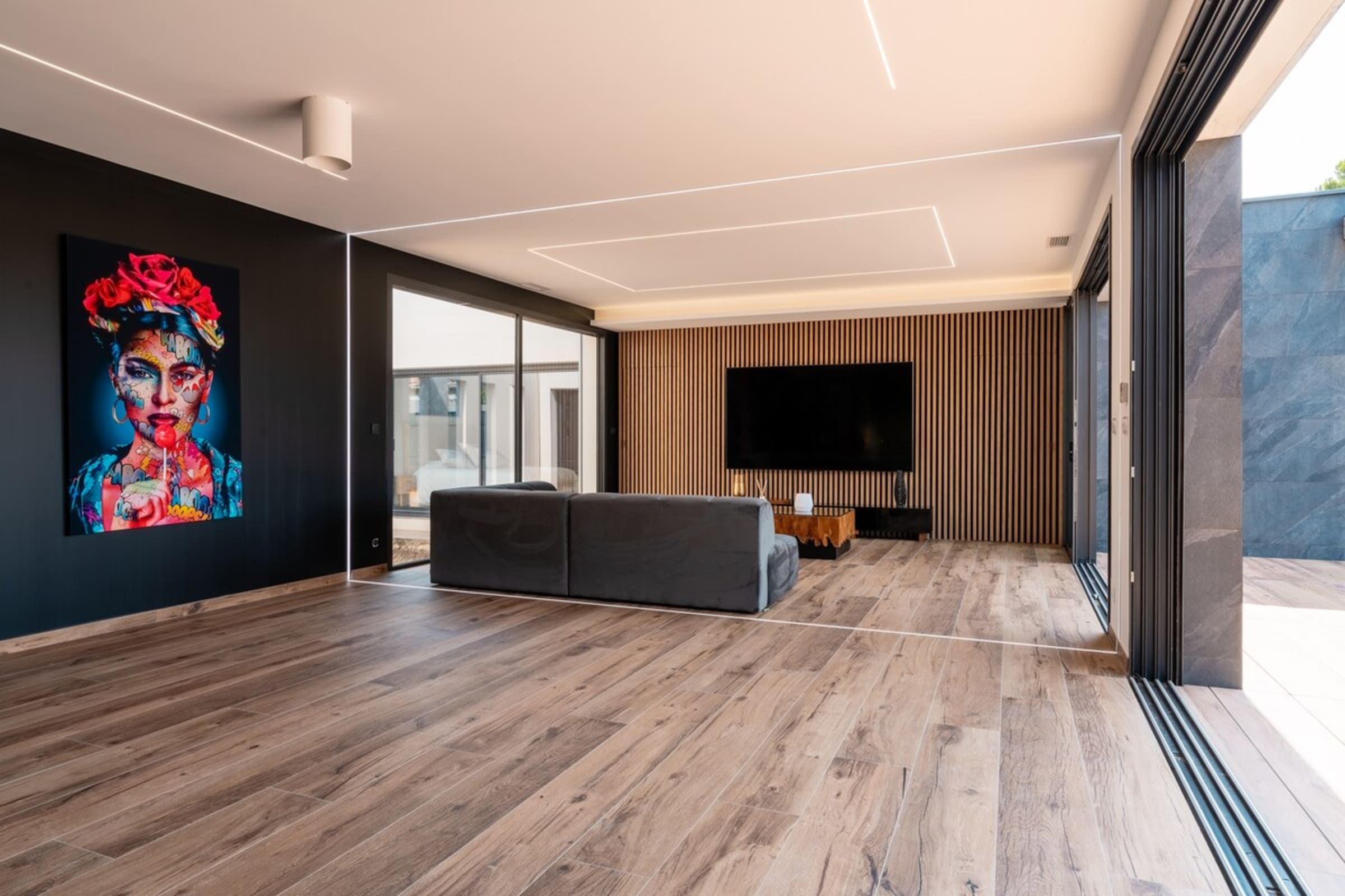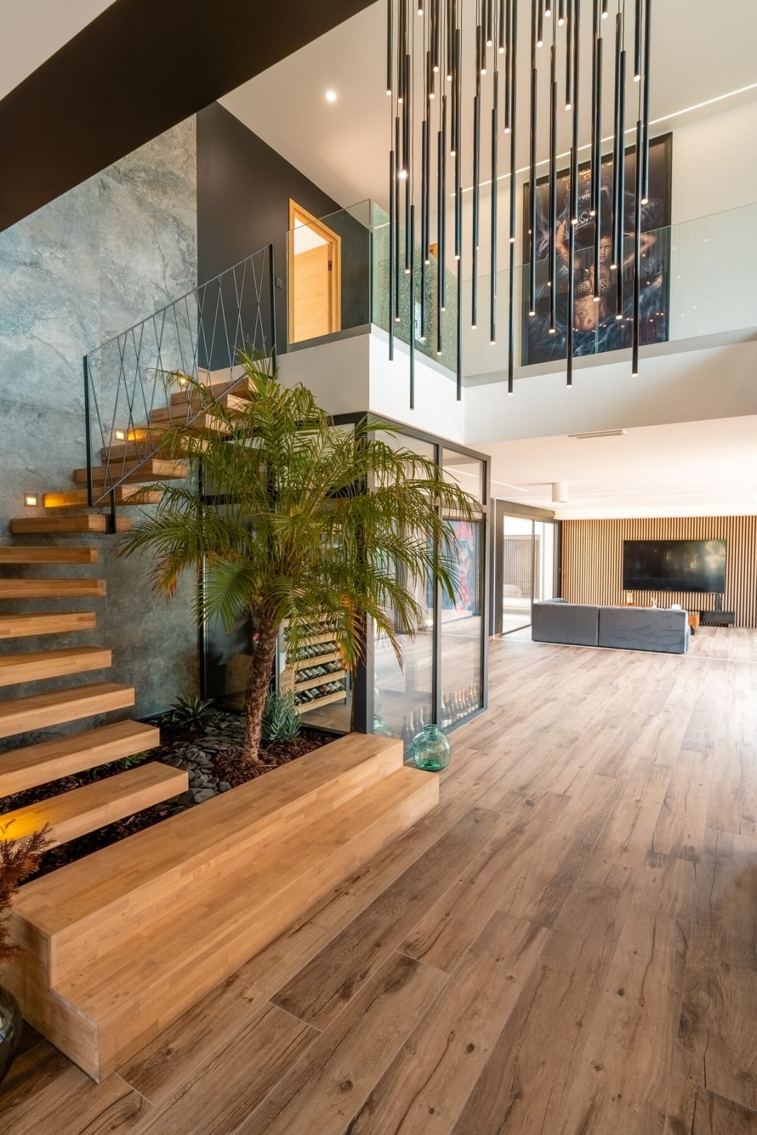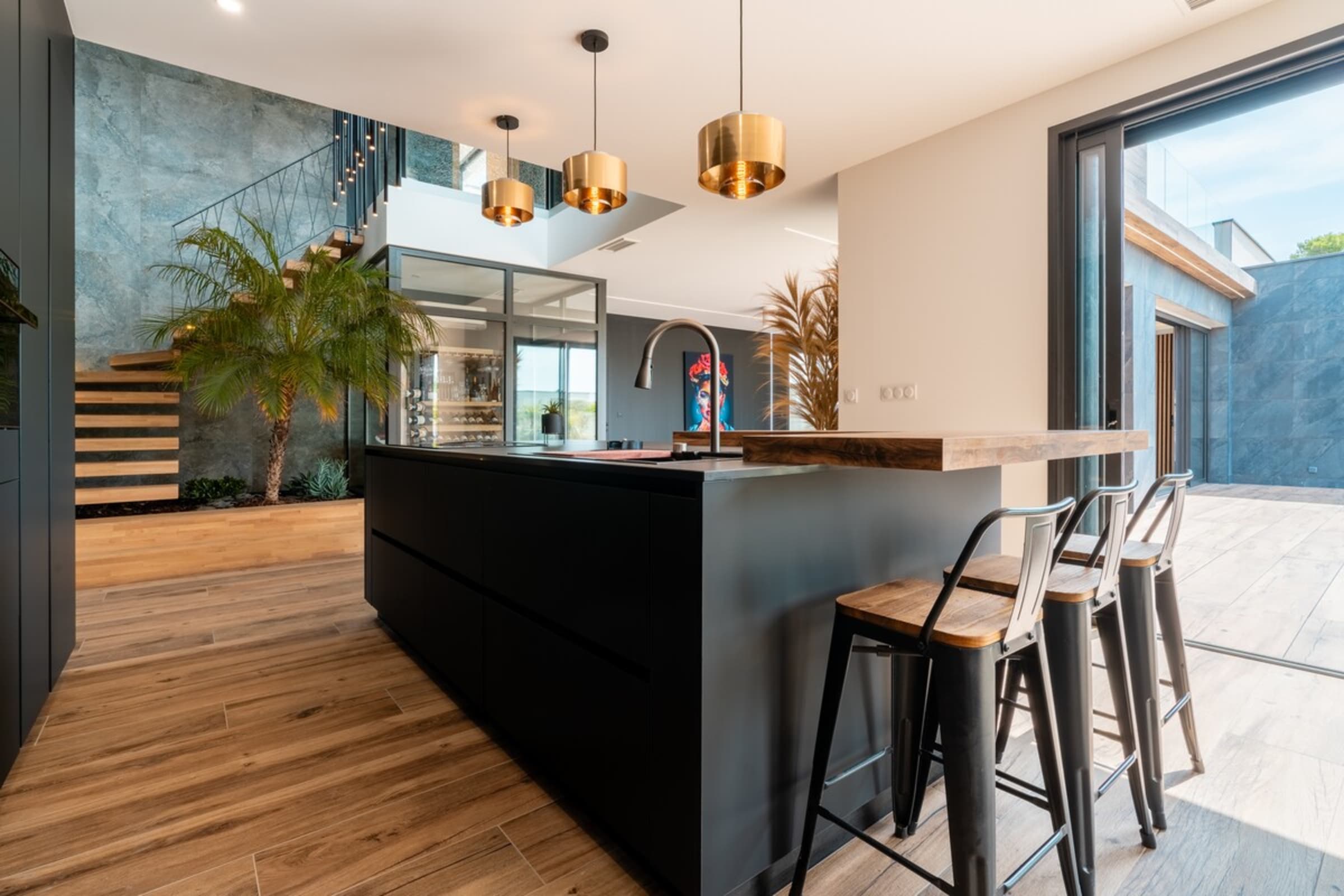L’immensité des lieux se ressent dès l’entrée : circulation fluide entre intérieur et extérieur, belles pièces à vivre pour que chacun profite de son rythme. Le salon s’ouvre sur la terrasse et la piscine en pierre de Bali ; à proximité, un braséro avec salon lounge abaissé invite aux soirées douces, tandis que le boulodrome promet des parties mémorables. La salle de cinéma prolonge les fins de journée et la cuisine d’été équipée met l’art de vivre en plein air au centre du séjour.