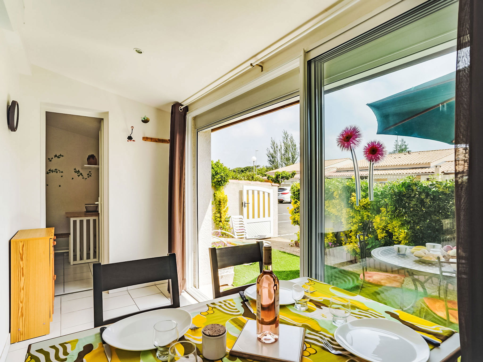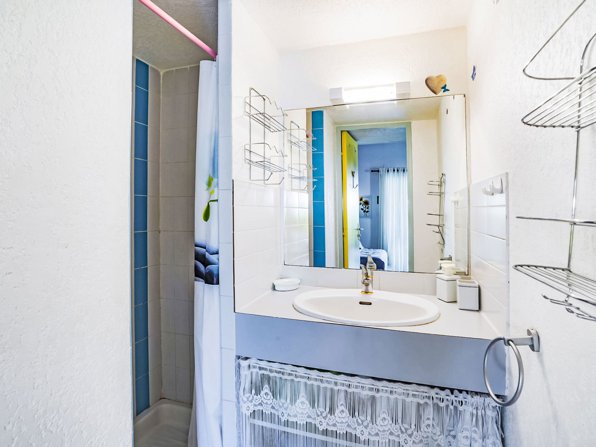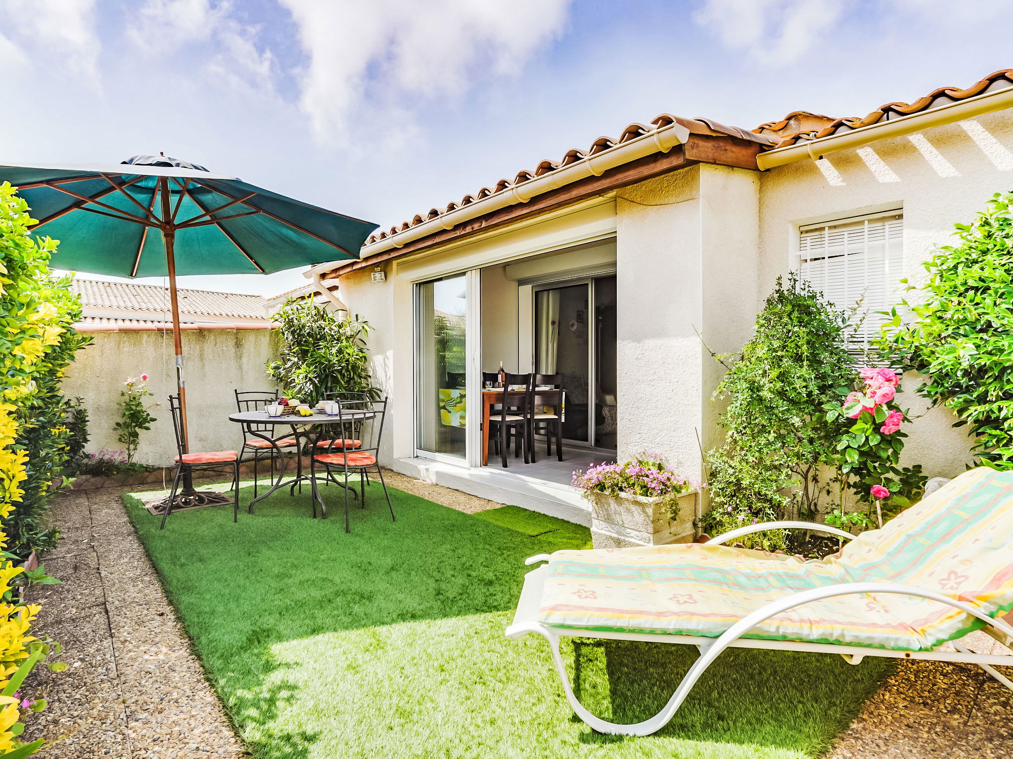 Résidence "Les Cristallines". Dans le quartier de Richelieu, à 400 m de la mer, à 400 m de la plage. En commun: piscine (12 x 6 m, profondeur 80 - 185 cm, disponibilité saisonnière: 28.Mai. - 30.Sep.). Place de parking près de la maison. Magasins 400 m, magasin d'alimentation 1.4 km, restaurant 100 m, boulangerie 120 m, arrêt de bus "Corsaires" 180 m, plage de sable "Richelieu" 400 m. Port plaisance 2 km, terrain de golf (27 trous) 700 m, tennis 3 km. Attractions à proximité: Aqualand 300 m, Ile des Loisirs 500 m, Musée de l'Ephèbe 2 km, Casino 2 km.