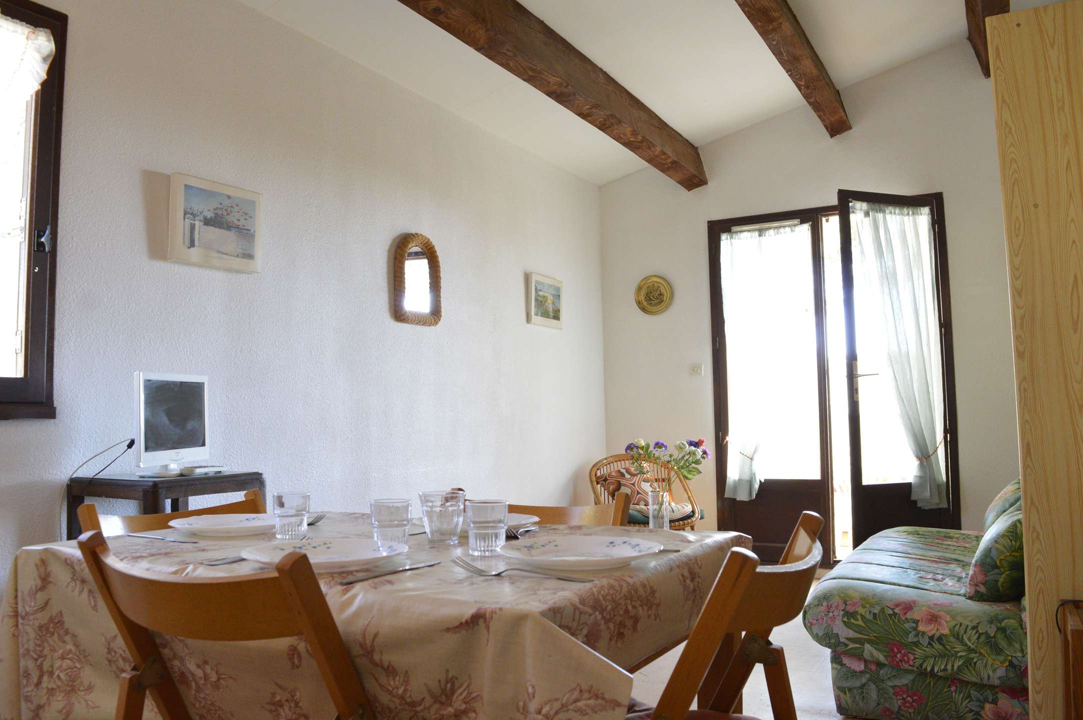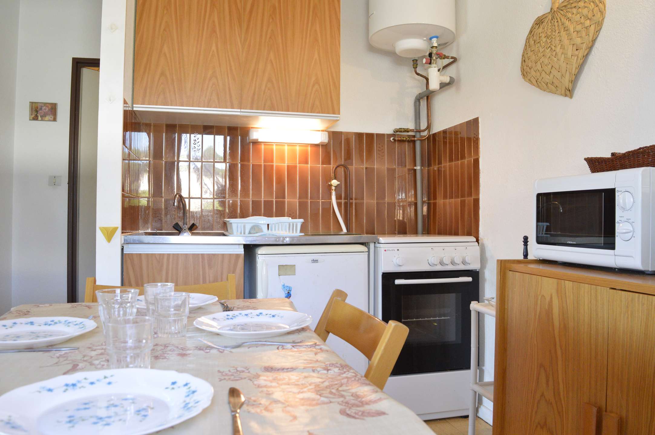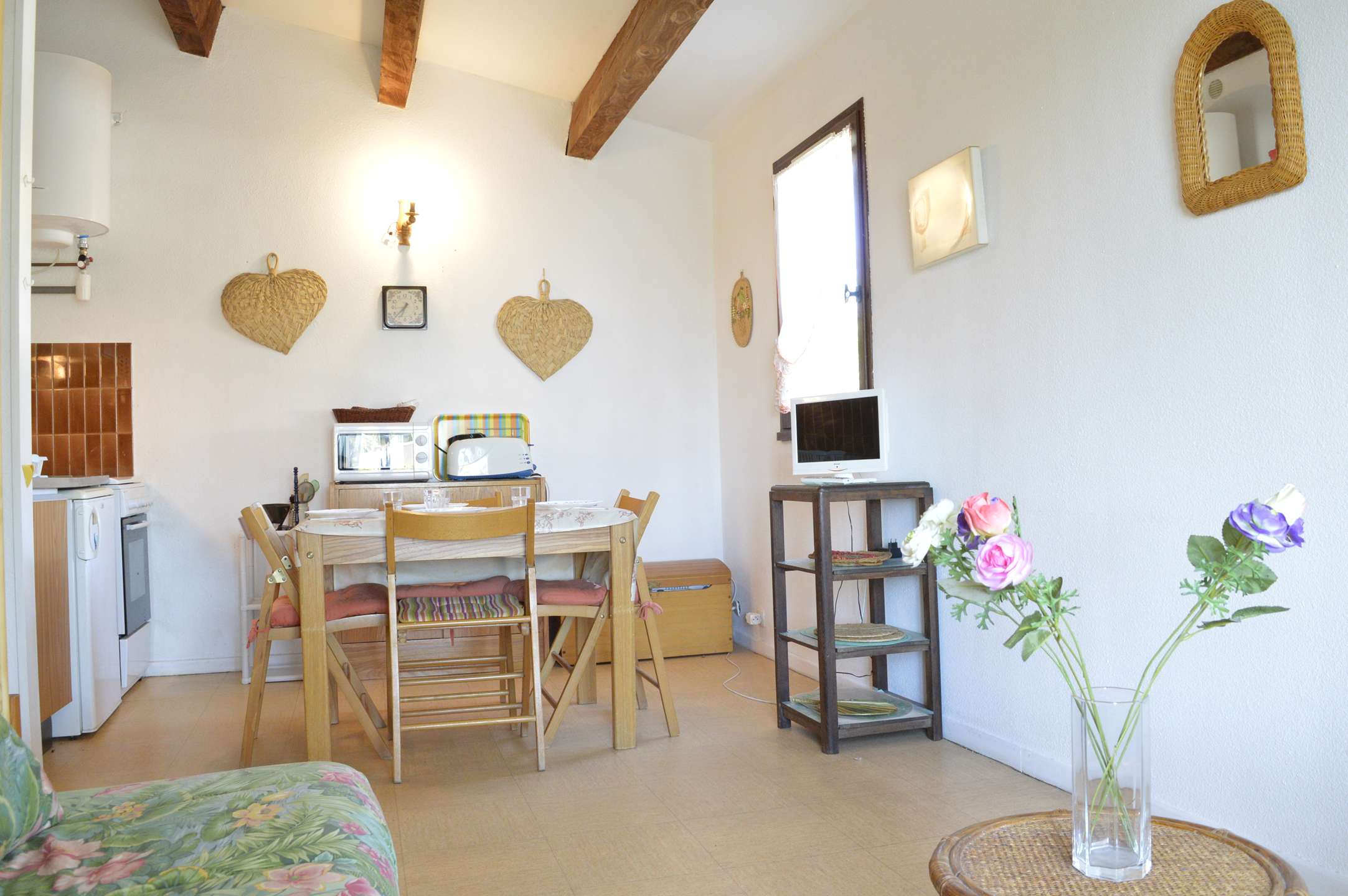 Cet maison de vacances, situé au 1er étage, comprend un séjour avec un canapé clic clac convertible 2 places et télévision, une chambre avec 2 lits de 1 place, un coin cuisine équipé, une salle d'eau et un WC .