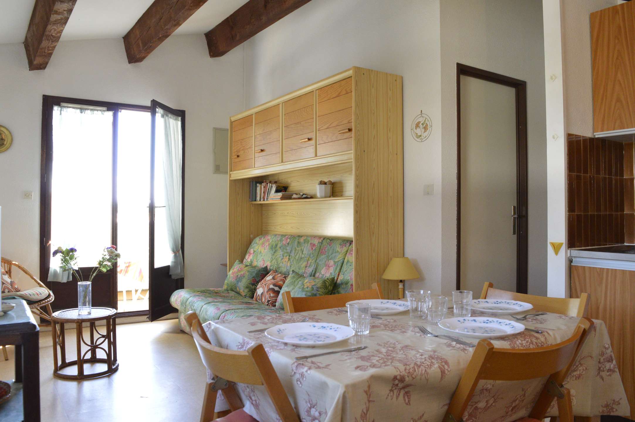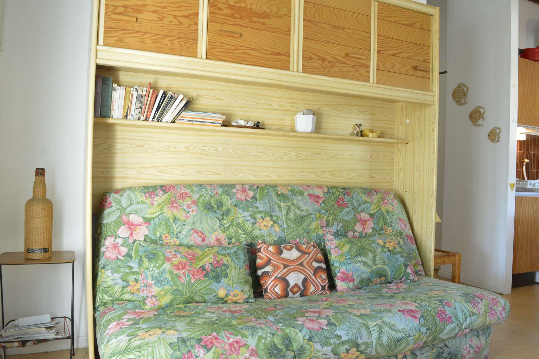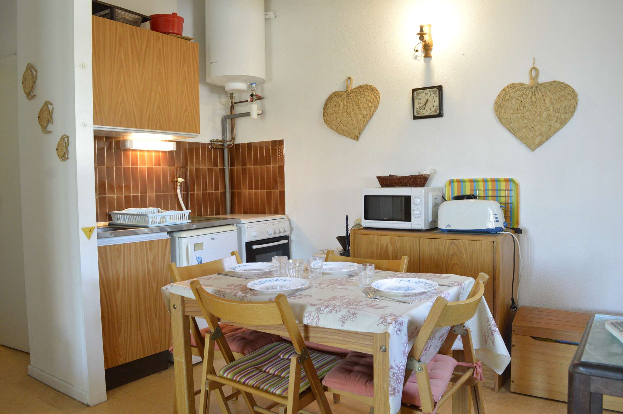 Cet maison de vacances, situé au 1er étage, comprend un séjour avec un canapé clic clac convertible 2 places et télévision, une chambre avec 2 lits de 1 place, un coin cuisine équipé, une salle d'eau et un WC .